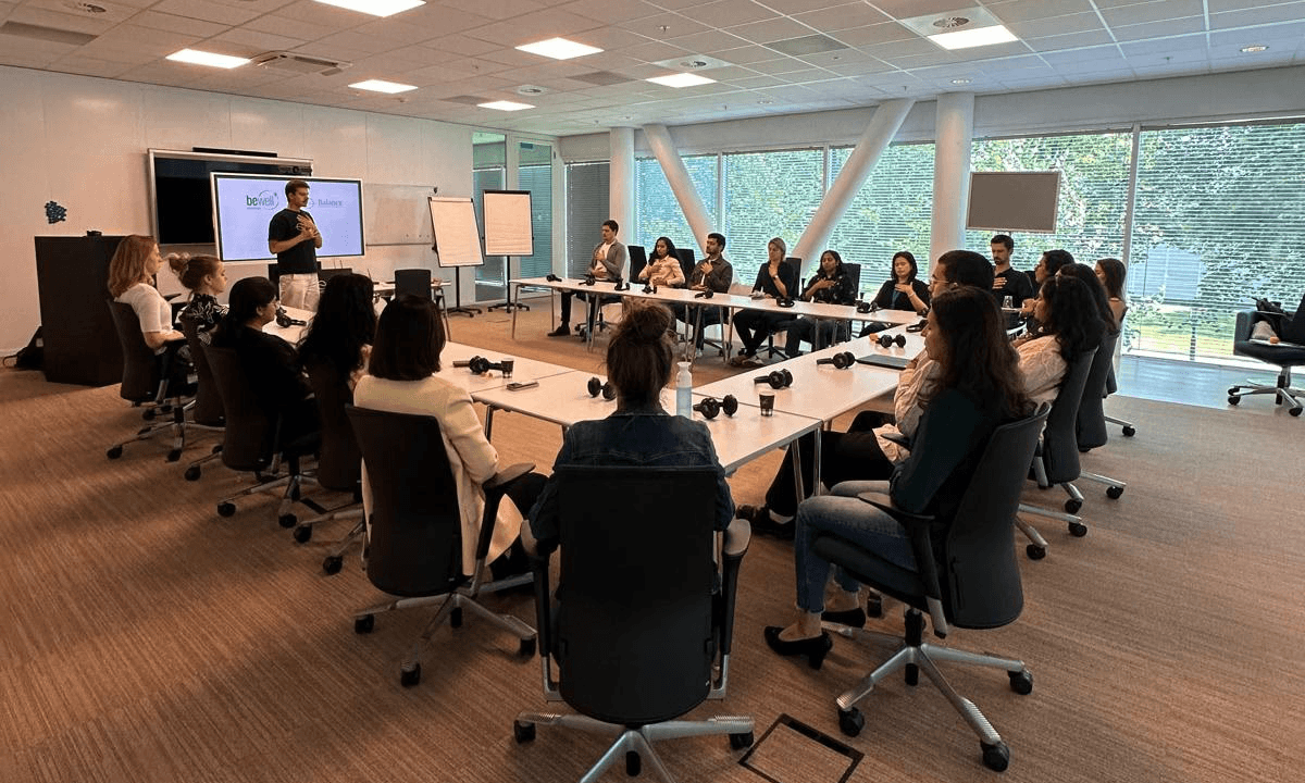 Short, accessible sessions that fit into the workday. No change of clothes, no prior experience, and no spiritual framing. Just practical techniques that help people feel calmer and more focused at work.