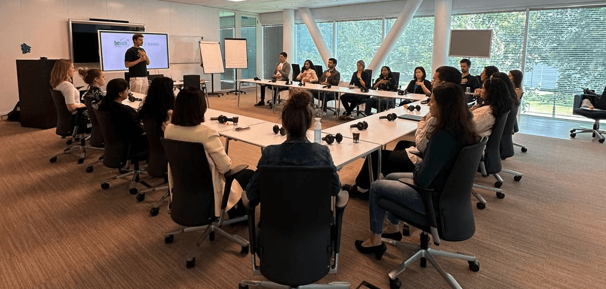Short, accessible sessions that fit into the workday. No change of clothes, no prior experience, and no spiritual framing. Just practical techniques that help people feel calmer and more focused at work.