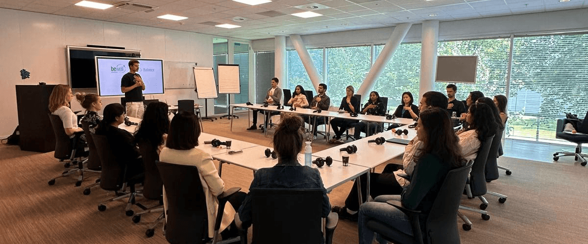 Short, accessible sessions that fit into the workday. No change of clothes, no prior experience, and no spiritual framing. Just practical techniques that help people feel calmer and more focused at work.