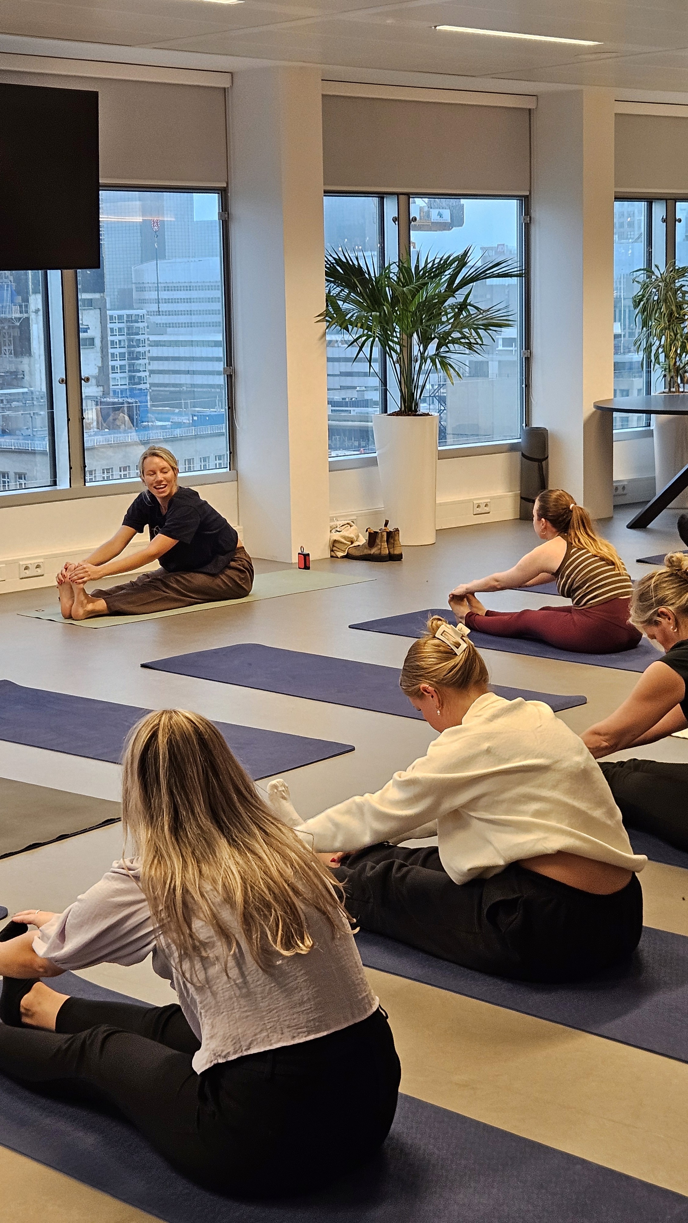 Yoga helps reduce physical tension, improve posture, and support mental clarity. Our sessions are designed to meet people where they are, offering simple movement and breathing practices that support wellbeing at work.